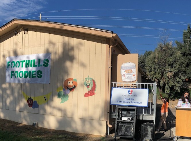 At Foothills Elementary, the “Foothills Foodies” Hub opened up in October in a portable. To make the Hub work, volunteers from local churches organize, stock, and distribute the food. Two staff members from the school coordinate linking school families to the Hub, then dozens of nonprofits and government agencies all lend expertise, food, clothing, and medical supplies. To make the Hub work it literally takes an entire community!